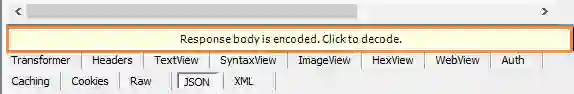 点击这个json包,在fidder右侧,点击解码,我们将视频包的json解码