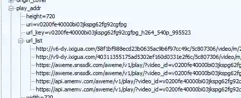 Json是一个字典,我们的视频链接在:aweme_list中,每个视频下的video下的play_addr下的url_list中,一共有6个url,是完全一样的视频,可能是为了应付不同环境,但是一般第3或4个链接的视频不容易出问题,复制链接,浏览器中粘贴就能看到视频了。