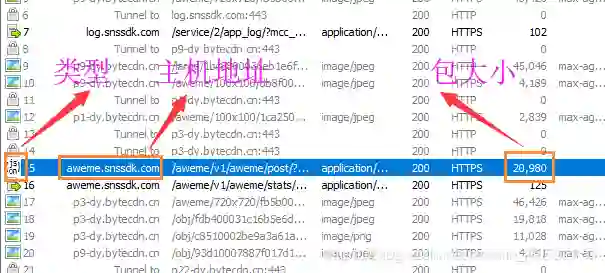 其中有个包,包类型为json(json就是网页返回的数据,具体百度),主机地址如图,包大小一般不小,这个就是视频包。