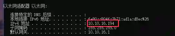 首先查看本机的IP:在cmd中输入ipconfig,记住这个IP
