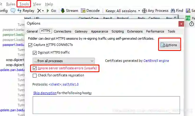 接下来就可以在fiddler中抓到手机/模拟器软件的包了。