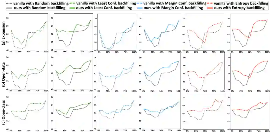 随机回填策略(灰色)& 基于不确定性的回填策略(彩色)