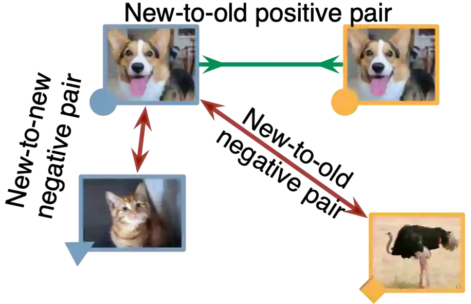 造成,负翻转指的是旧检索系统中可以正确识别的查询图像在热刷新升级过程中被错误识别。而造成负翻转的最主要原因,是在底库特征在线回填过程中,存在新→新负样本对距离小于新→旧正样本对距离的情况,如下图所示。