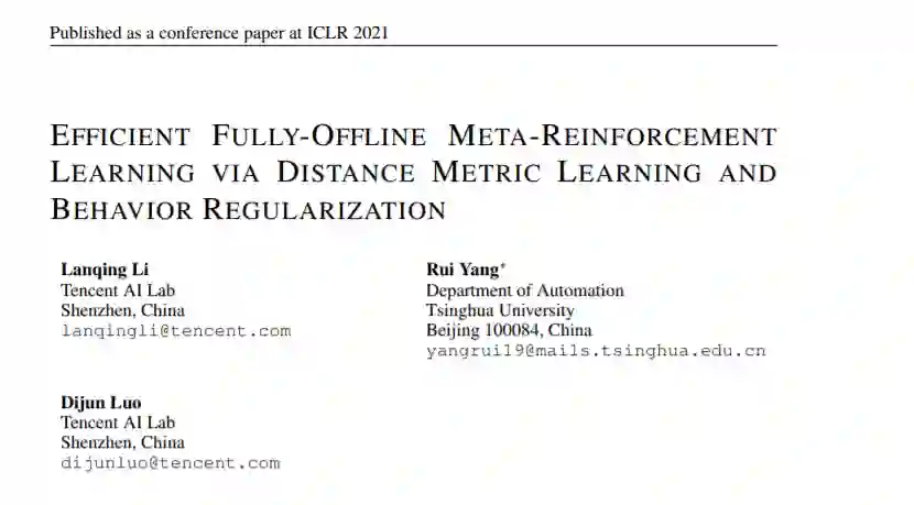 后台回复“DMLBR” 可以获取《【ICLR2021】一种基于距离度量学习及行为正则化的完全离线的元强化学习方法》专知下载链接索引