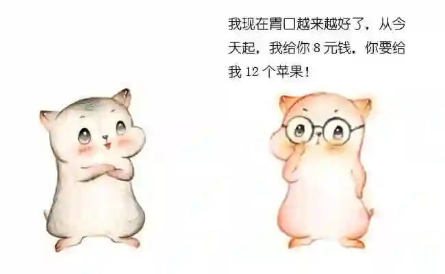 就这样,小贩找到了一个长期买家。每一天小贩把8个苹果卖给买家,剩下16个苹果自己享用,买卖双方都很开心。