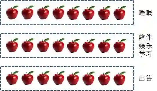 他拿其中8个苹果用来睡眠,8个苹果用来陪伴家人、休息娱乐、读书学习,8个苹果用来对外出售。