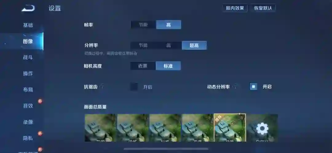 第一款试玩的是王者荣耀:局内开的高帧率,极高分辨率以及极致的画面总质量。