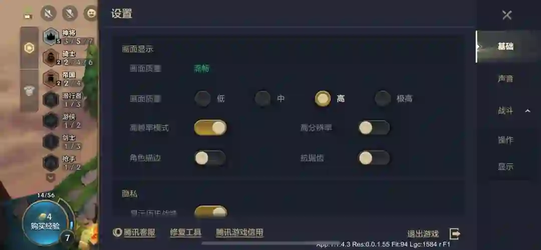 第二款试玩的是金铲铲之战:局内调的是高画质、高帧率模式。