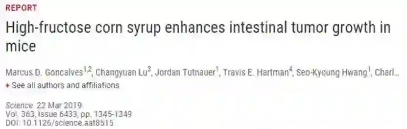 Marcus D. Goncalves,et al.High-fructose corn syrup enhances intestinal tumor growth in mice.Science 22 Mar 2019.