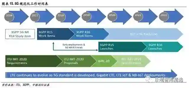 在这一时段内,ITU将组织或协调成员在技术领域开展交流和评估。2016到2017年完成主要需求评估标准,并在2018到2020年持续为3GPP的标准给出建议和评估。