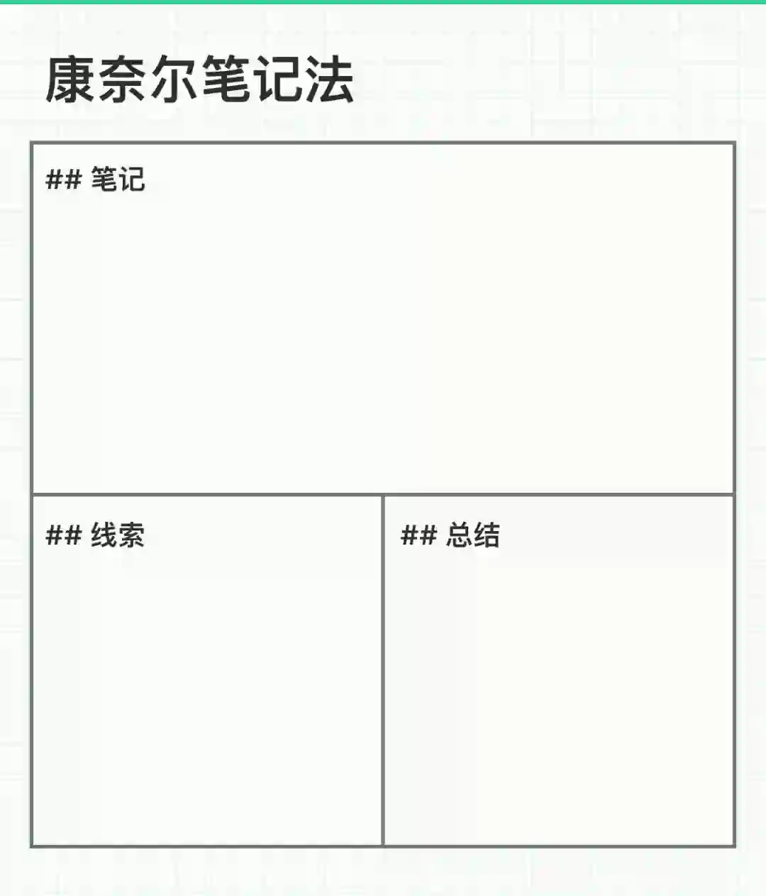 康奈尔笔记法简而言之就是将笔记、线索、总结串联在一起,起到不断总结浓缩的结果。笔记部分就是你正常记录笔记的部分,线索部分其实就是就是归纳总结笔记部分的作用,就是一种大纲的表现,而最后总结就是记录最浓缩的内容。