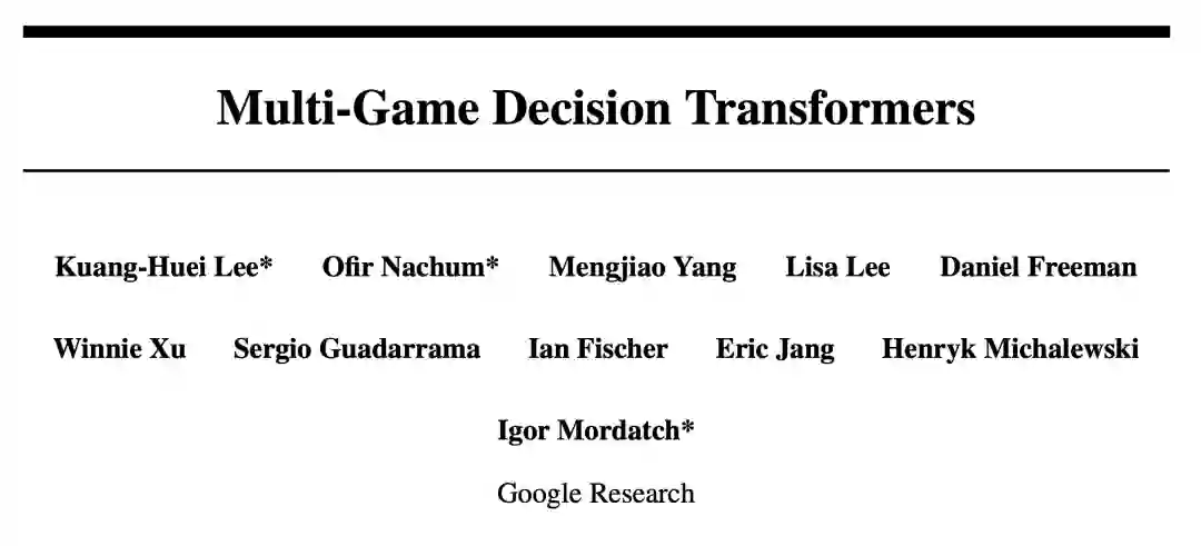 为了训练这个模型,研究者只使用了先前从 Agarwal et al. [1]中收集到的轨迹,但是交互式地评估了本研究的智能体。研究者表示,他们并不是在追求特定游戏智能体所能达到的精通程度或效率,因为这项研究仍处于早期阶段。相反,他们要探索的是,在语言和视觉领域观察到的相同趋势,是否也适用于大规模的通才型强化学习?