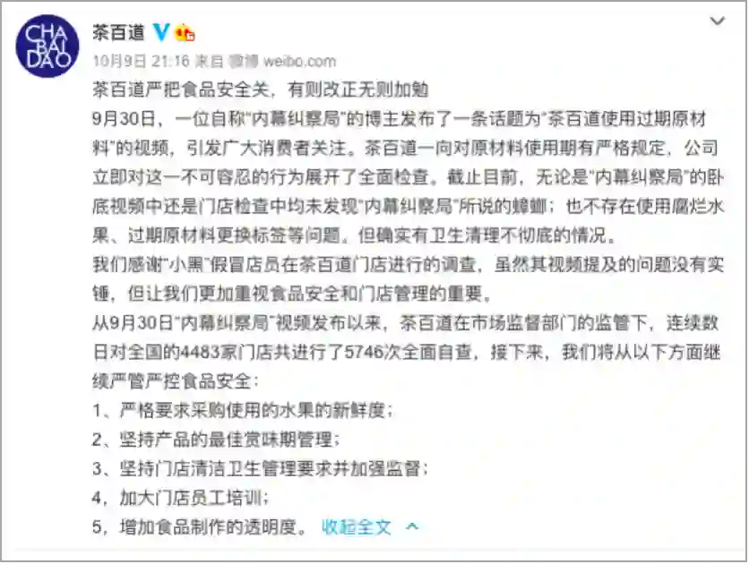 一份企业面对突发舆论事件完整的对外声明大概都是这样的模板,其中个别企业根据自己品牌的差异化会有所变通。