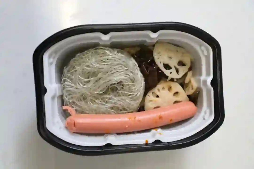淀粉肠、粉丝、蔬菜包(土豆、海带、藕、木耳、笋)