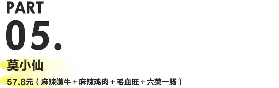 至于味道,鸡胸肉特别柴,就像在嚼卫生纸、鸡肠等杂碎稍微好一些,味道浓郁软烂。锅底也是莫小仙一贯的端水底料无功无过,看在便宜大碗的份上,我们也不能对它要求太高。也就是说:能吃!能吃饱!