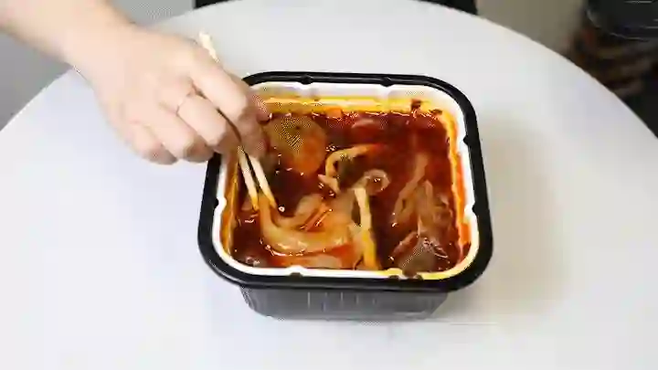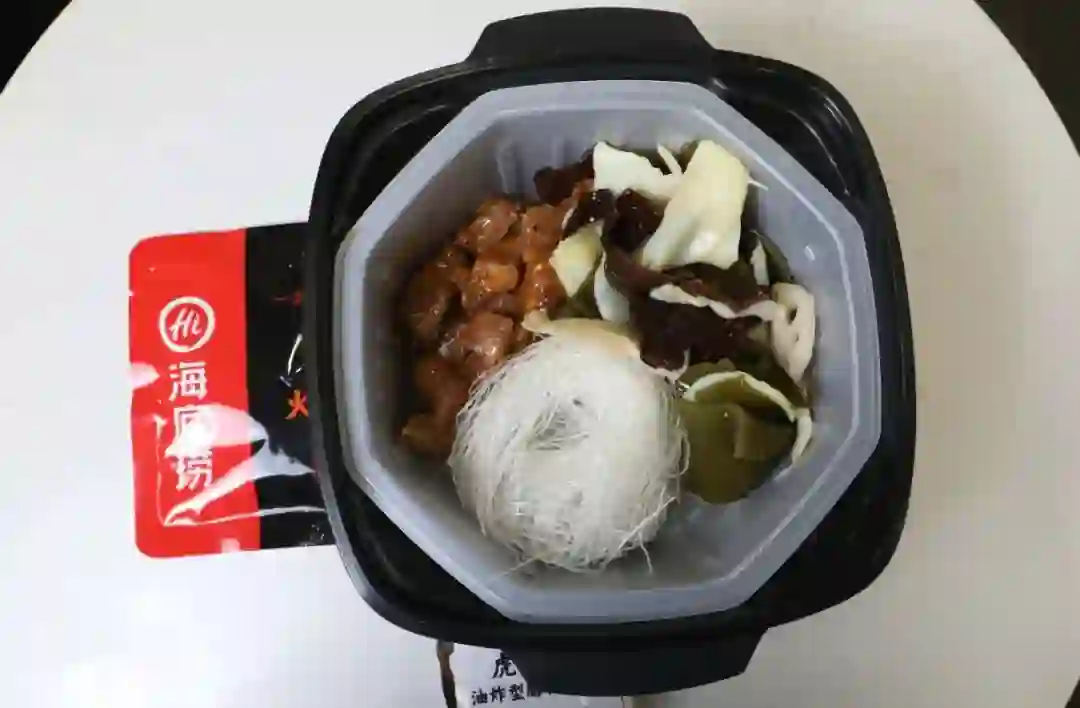 海底捞因为经常在线下吃,口味熟悉,接受度会高一些。麻辣嫩牛采用的清油锅底,虽然没有牛油那么香,但是也相对“清爽”,辣度适中,北方人可入。但如果友友和夏老师一样完全不能吃辣,建议放弃自热锅,不然胃疼挺遭罪。