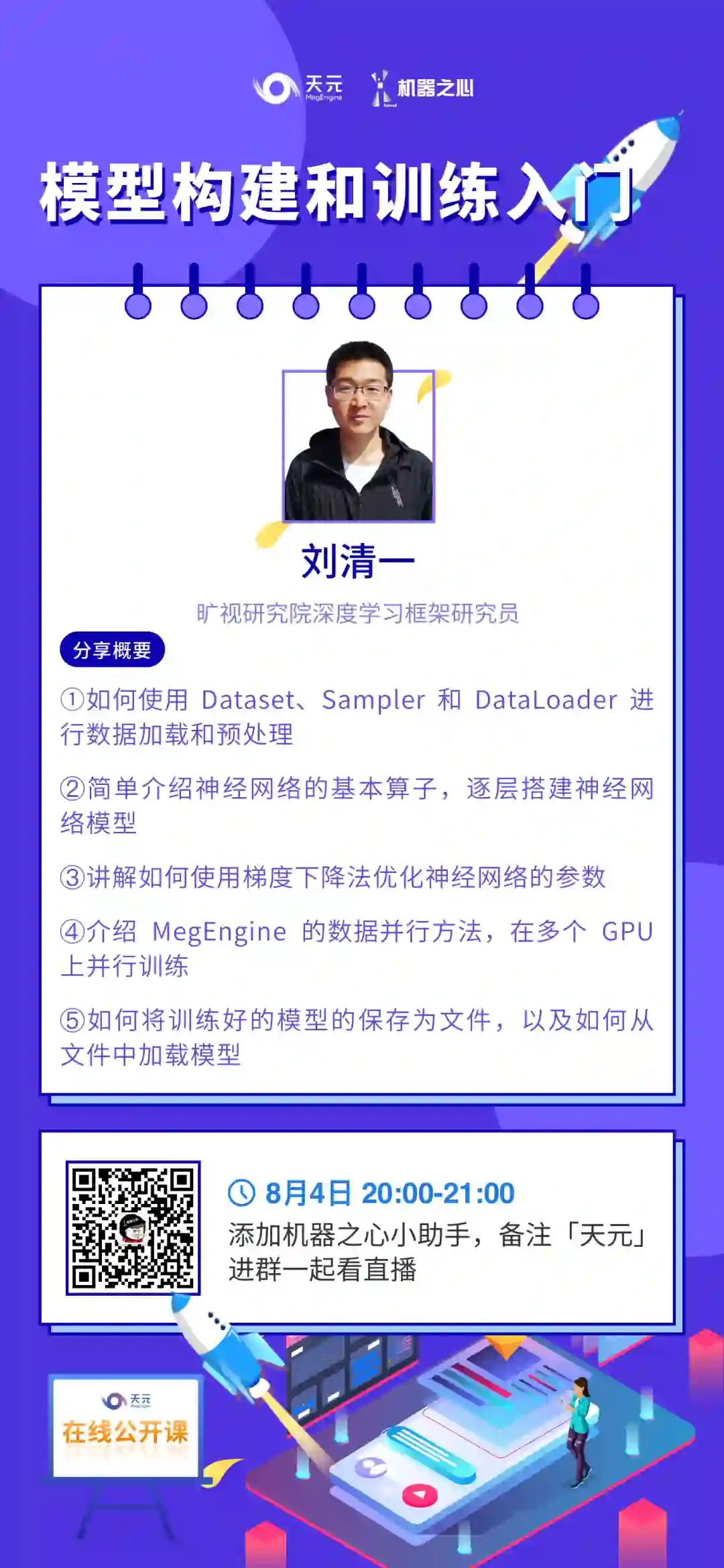 课程全程免费,添加机器之心小助手,备注「天元」即可加入学习交流群,一起看直播学理论、做作业动手实践。