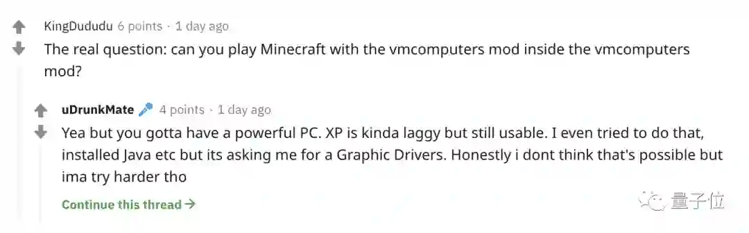 根据uDrunkMate的说法,在《我的世界》里运行Windows XP或Ubuntu是非常“缓慢的”,更不用说适合Win7、Win10等现在常用的系统了,所以安装新版电脑游戏也是不可能的,不过他还在努力尝试。