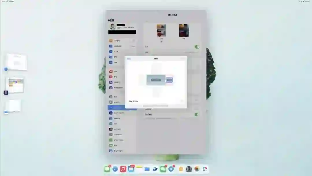 在公测版中,你还可以在「设置」-「主屏幕与多任务」-「台前调度」中进行一些设置,比如是否显示左侧历史工作区,以及下侧程序坞等,还可针对不同显示屏幕进行个性化调整;打开 Stage Manager 时会进行操作提示;与台前调度相关的 bug 也有所减少。
