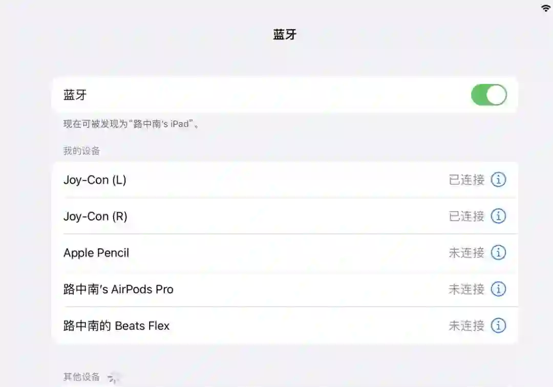除了 DualShock 手柄和 Xbox 手柄之外,iPadOS 16 还支持 Joy Con 和 Switch Pro Controller。特别的,可以将两个 Joy Con 分别连接到 iPad,也可以将两个 Joy Con 合为一个手柄连接到 iPad。另外,iPadOS 16 也支持同时连接两个手柄。