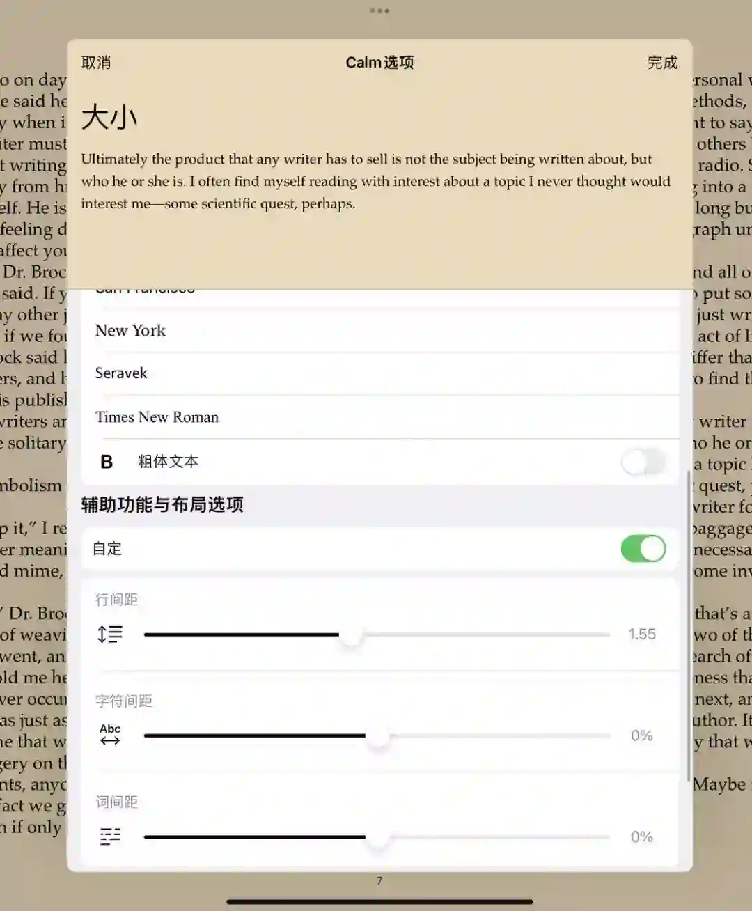 在「图书」app 中,可以自定义自己在阅读 epub 格式电子书时的体验,比如背景颜色、字体大小、行间距等等,可自定义的选项比之前多了很多。