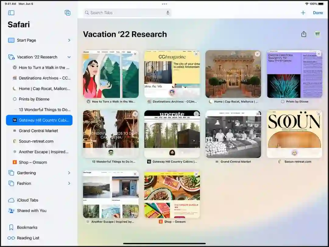 在今年的 WWDC 上,Apple 也将团队协作功能作为亮点展示了出来。包括在 Safari 中共享标签页和标签页组、同步修改共享相簿中的照片,甚至还推出了一款新的画板 app「Freeform」。