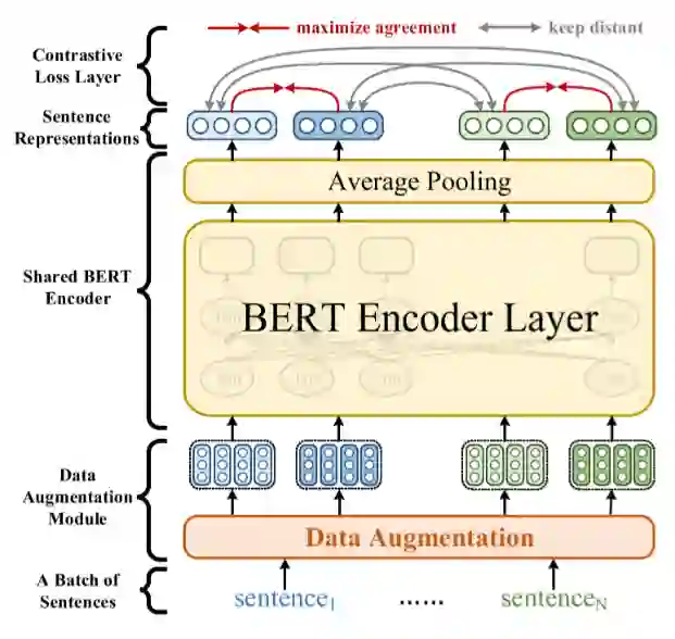ConSERT[5]的模型结构非常简单,基本与SimCLR相同,只是把ResNet换成了Bert,并且去掉了映射头,见图16。