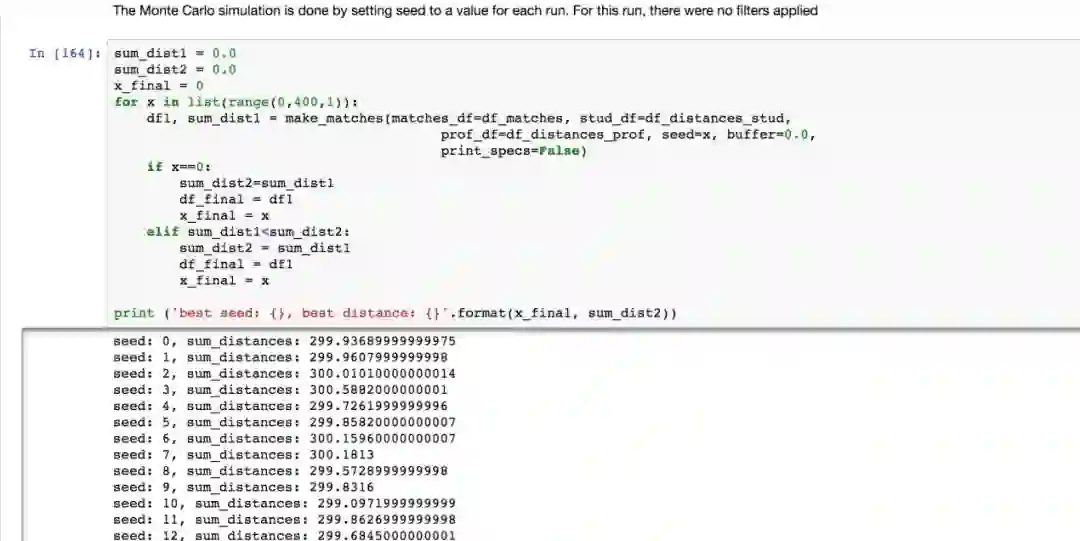 一个用户可能有多个相同最佳得分的匹配结果。我们通过随机抽样来进行配对。我们使用蒙特卡洛模拟来进行随机配对,进而得到给定的学生群体的最佳匹配集。