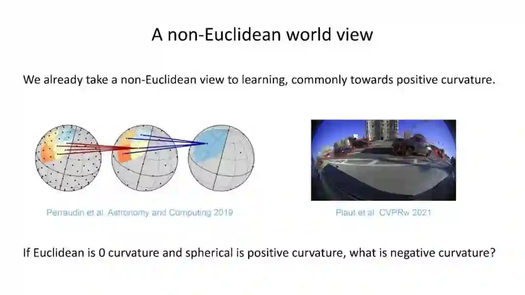计算机视觉中的学习都是关于深度网络的,这种网络按设计在欧几里得流形上运行。但欧几里德几何是深度学习的最佳选择,还是仅仅是一个实用的选择?最近机器学习和计算机视觉方面的文献表明,双曲几何提供了一个强有力的替代方案,它可以改进嵌入层次结构、图表、文本、图像和视频的能力。