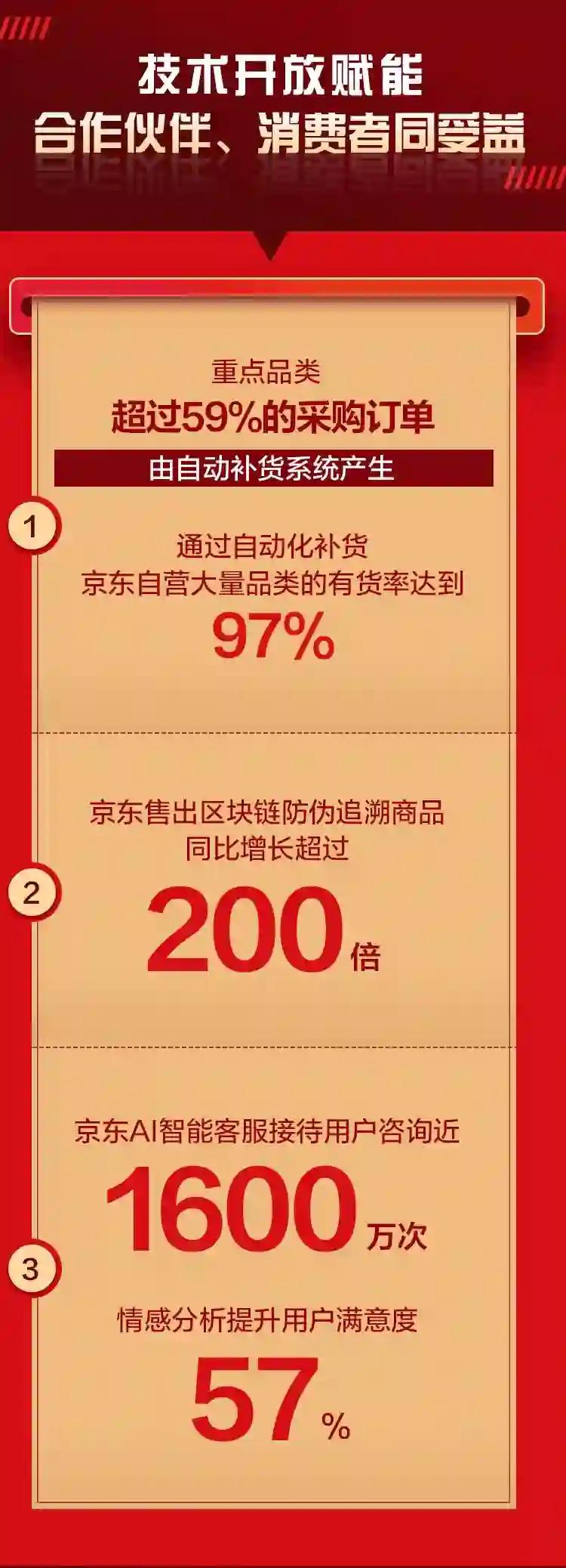 其实,京东从全面技术转型以来,就在不断地建设“无界零售”的生态联盟,除了不断赋能线上线下零售,京东也在不断地拓宽着生态的广度,如京腾计划、京度计划、京奇计划、京易计划、京搜计划、京爱计划等一系列“京X计划”,以引入互联网公司的流量能力、社交能力、内容能力,这使得京东可以帮助品牌商触达近100%的中国互联网用户;京东还不断引入顶级世界人才,与斯坦福、MIT等高校在技术研究方面进行深入合作;此外,京东和沃尔玛、步步高、屈臣氏、奥康等零售商、品牌商也达成高效合作,并在不断通过技术创新与对外赋能,携手合作伙伴共同提升供应链效率。