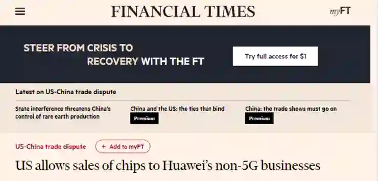 10 月 29 日,据金融时报报道,美国官方已经改口,只要不将芯片用于华为 5G 业务,将允许越来越多的芯片公司向华为提供组件。该报道援引一位参与其中的半导体企业高管话语称,“美国商务部在最近的谈话中一直告诉企业,尽管对华为的供应许可证是以拒绝为目的,但如果你可以证明你的技术不支持 5G,这一点可以被克服。”