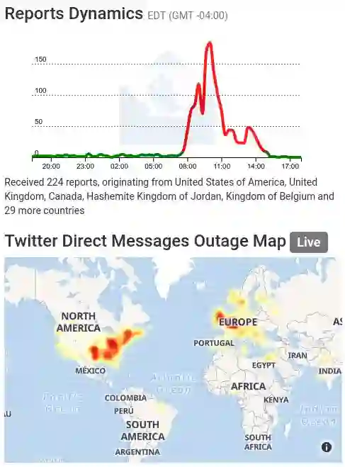 Twitter的私信服务在7月3日出现故障,如https://outage.report/twitter-direct-messages所示。