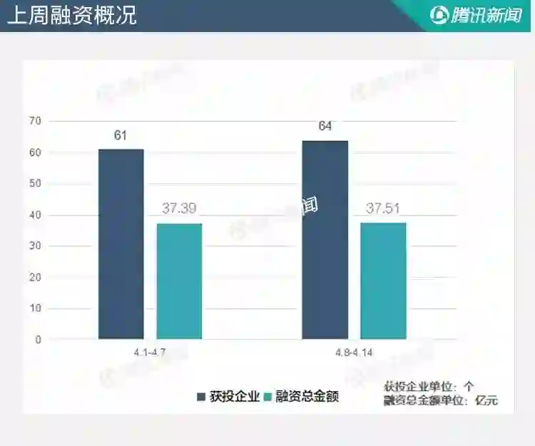 上周国内共发生了64起投融资事件,累计金额超过37.51亿人民币,和上周相比,获投项目数量小幅及融资金额都小幅上升。