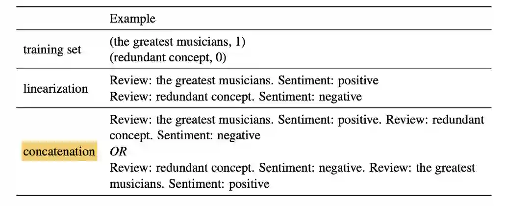 而本文主要探究的,就是in-context learning中,引入的前缀里,标注数据的顺序(即上图的concatenation部分)对模型表现的影响。