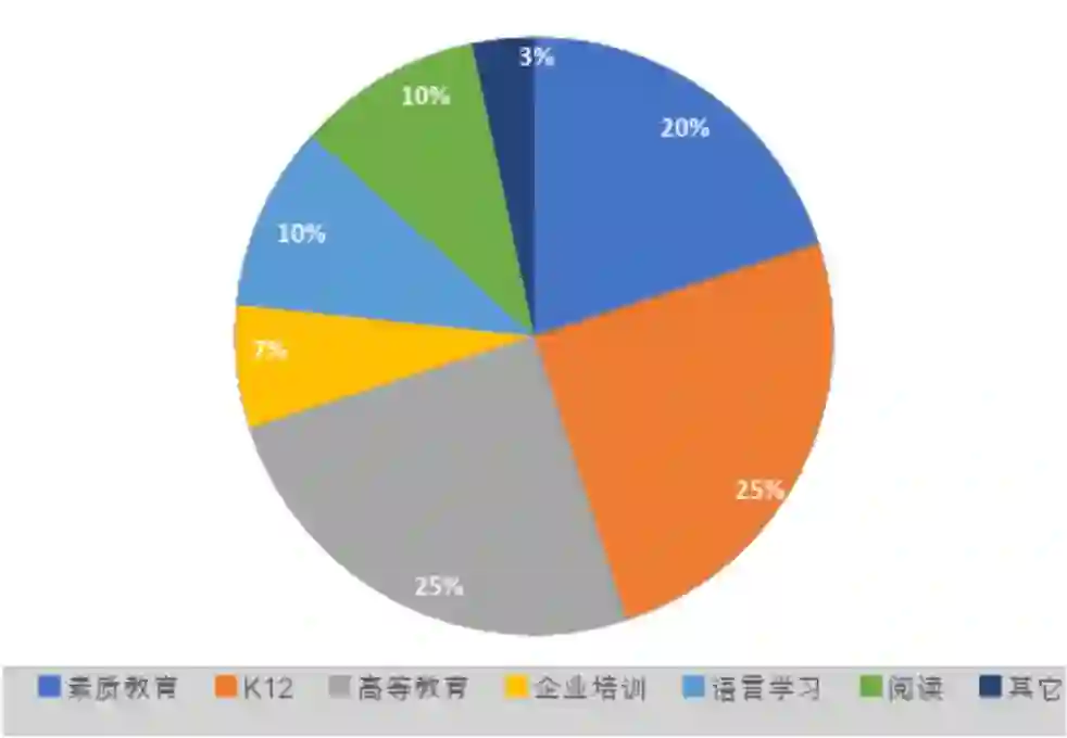 而美国高等教育是当今世界最具竞争力的产业之一,在为世界各地输送大量人才的同时,也是各种前沿科技研究的先驱。美国 TOP30 AI+ 教育公司中,大部分从事“高等教育”和“K12辅导”,两者合起来占总数的一半(其次是占比 20% 的素质教育)。所以在美国,高等教育得以与 K12 平分秋色。