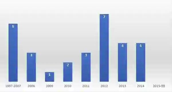 也正因为这些技术本身都很尖端,很年轻,这些美国 TOP30 AI+教育的公司大多也很年轻,比他们辅导的小朋友们还要小一些:大多成立于 2012-2014 年。2012年诞生的教育公司最多,有7家,其次是2012年和2014年,皆为4家。但和一些一飞冲天式的风口领域不同,美国的教育产业发展趋势和成长速度很平缓,是个慢行业 —— 当然,也不太可能像有些风口一样迅速偃旗息鼓。