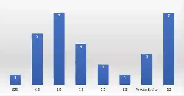 此外,以融资轮次划分,可以看到目前不少美国TOP30 AI+教育公司主要以A轮和B轮为主,共计12家,占总体的40%。融资额度最高为1.8亿美元,平均值约为4000万。