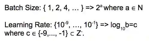 例如,使用批量大小的值作为2的幂指数,并且在日志中对Learning Rate进行抽样是很常见的。