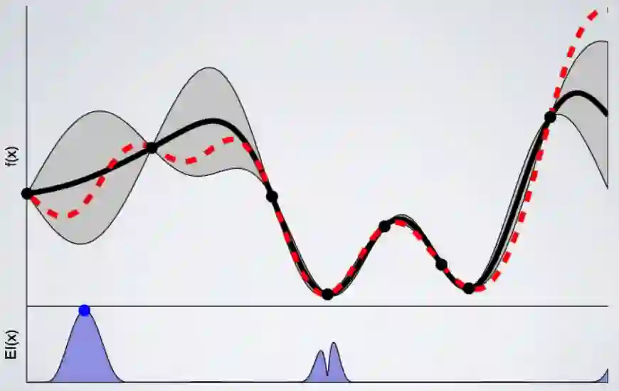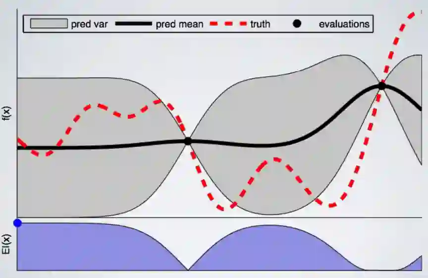 我们可以将高斯过程定义为学习从超参数配置到度量映射的替代过程。它不仅产生一个预测值,而且还会给我们一个不确定性的范围。