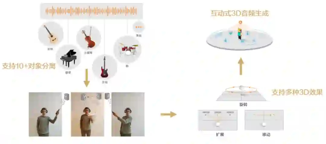 一些传统的 3D 音频制作技术可以达到或接近这种效果,但制作过程比较繁琐,需要获取原始的分轨素材(如录制的人声、钢琴声等),并使用专业的数字音频工作站(DAW)和 3D 混音插件手工制作,因此制作周期长、生产效率低、成本高、门槛高。此外,开发者由于没有歌曲的原始分轨,因此通过传统方法将 2D 音频转成 3D 难度也很大。