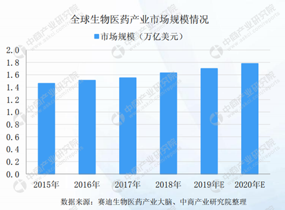 一方面,医药行业有潜在的巨大发展潜力。据中商产业研究院《2020年中国生物医药产业园市场前景及投资研究报告》显示,全球生物医药市场快速增长,预计到2020年全球生物医药市场将进一步增长至1.78万亿美元。