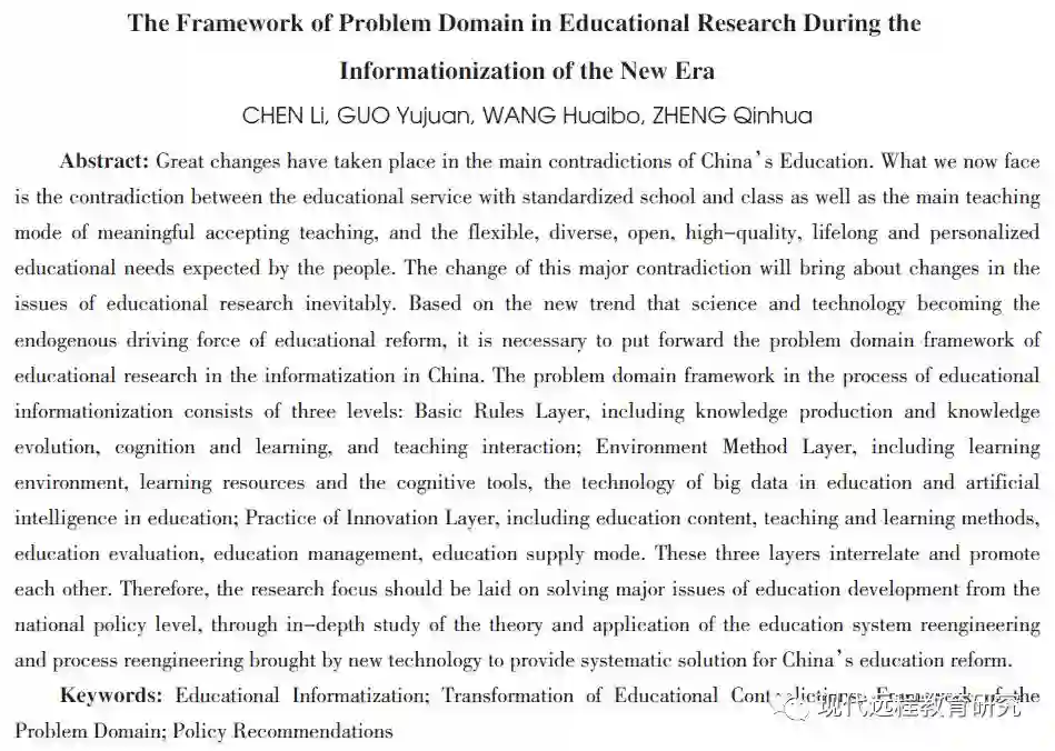 引用:陈丽,郭玉娟,王怀波,郑勤华(2018).新时代信息化进程中教育研究问题域框架[J].现代远程教育研究,(1):40-46.