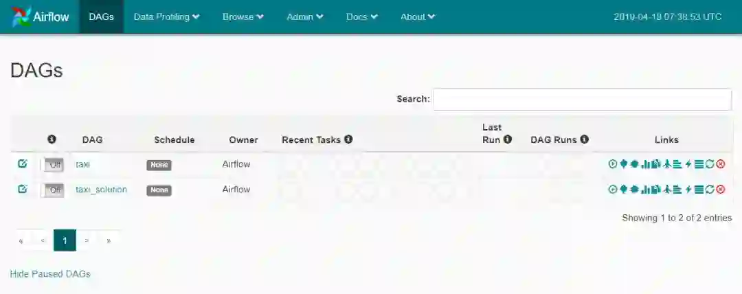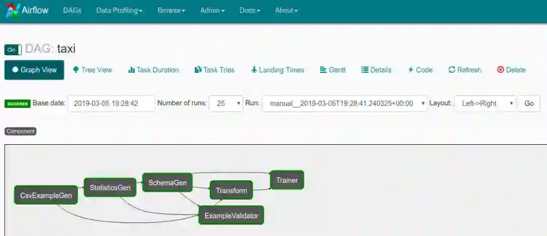 其中包含了2个示例DAG:taxi和taxi_solution,是针对芝加哥出租车数据集的两个机器学习流水线: