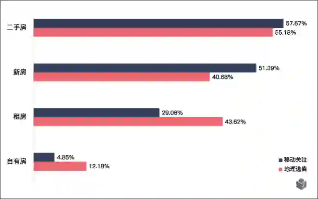 为了更准确地反映逃离人群对居住需求的趋势性,在逃离人群关注行为的基础上(图13标注为地理逃离),艾普大数据叠加分析了有逃离意愿人群关注行为的大数据计算结果(图13标注为移动关注)。