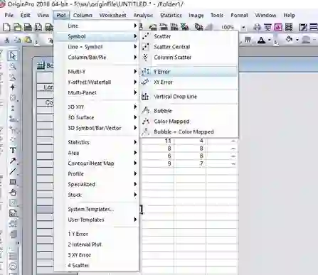 (1)选择数据,在菜单栏plot——symbol——Y Error