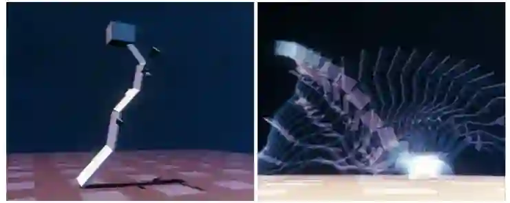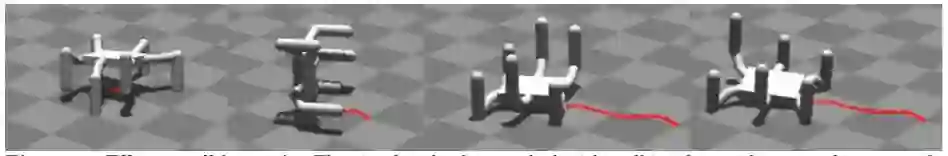 当模拟开始时,它们会倒下,利用初始势能获得较快的速度,完成所谓的“运动”。有些甚至会通过翻跟头来加速(如图 1)。
