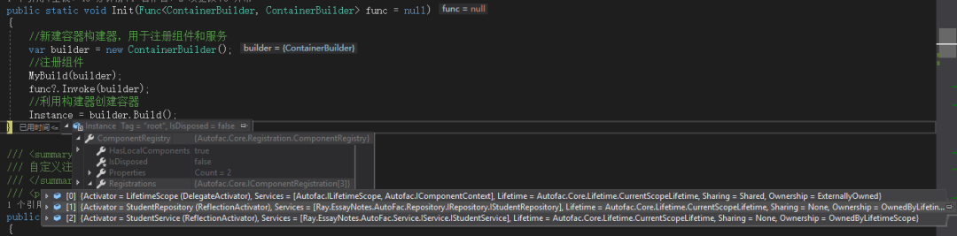 进入Main函数,先调用容器的初始化函数,该函数执行成功后,StudentRepository和StudentService就被注册到容器中了。
