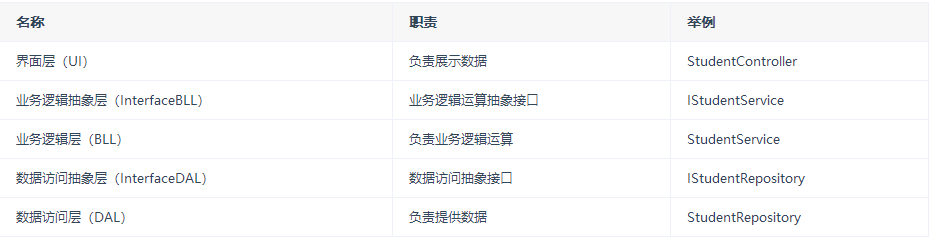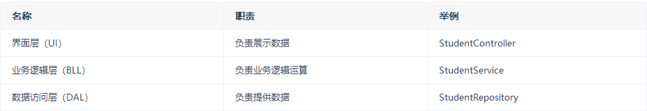 我(程序员B)的工作就是实现IStudentRepository接口的所有方法就行了,简单而明确,至于谁来调用我,我不用管。IStudentRepository里有根据Id获取学生姓名的方法,我实现了就行,至于业务逻辑层拿这个名字干啥,那不是我要关心的事情。