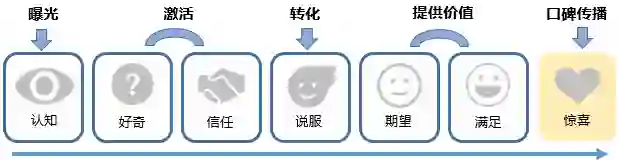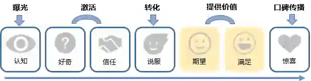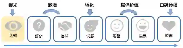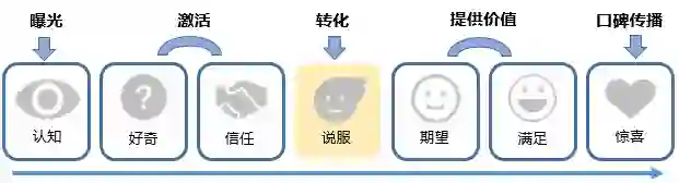 用户消费体验一款商品,会经历7个节点:认知、好奇、信任、说服、期望、满足、惊喜。