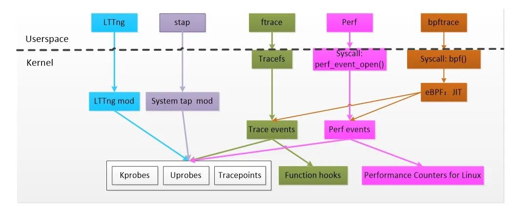 在 eBPF 出现之前,Linux 已经存在多种成熟的 trace 机制和相应的上层工具: